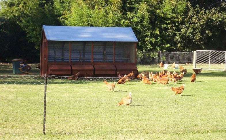 “I highly recommend Outpost Hen Houses, my 4 Bay Hen House is great, it has plenty of room inside with lots of perch space. I move it around to give my chooks fresh ground regularly, we just tow it with a 4WD and move the chook fencing to the new spot.
