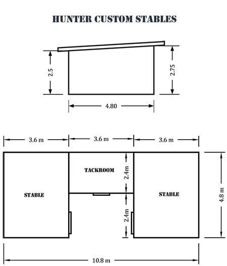 Hunter style stables from Outpost Buildings have a mono pitch roof line that is higher at the front for easy access. This makes it easier to get horses in & out of. The Hunter design is modular so can be extended to suit your needs by adding more stalls, tack rooms or covered areas.