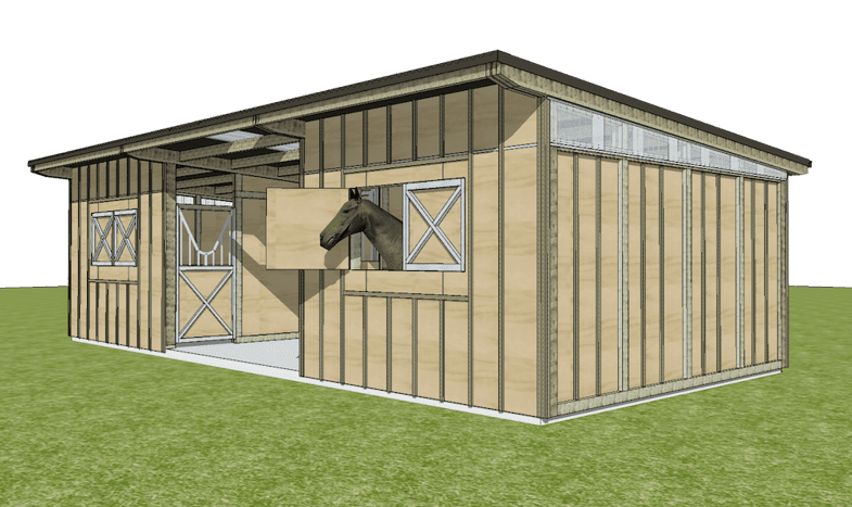 There are clear panels in the side cladding and roof for interior lighting. The stable is designed to be built on a concrete foundation and the customer can add bedding of their choice such as stable rubber mats or sawdust.