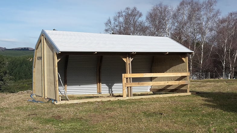 "Last year we got a Outpost Calf Shelter, the Upland 5.8m side opening design. We’ve been rearing calves for the last couple of years and had been only relying on trees for shelter until now. It’s great having the Outpost Calf Shelter and it definitely helped our wee calves get through the cold & wet weather we had last spring. I put a couple of timber rails across one side of the opening on the shelter and had a gate on the other side so I could shut calves in there if I wanted to. The timber rails were also great for hanging our calf feeder on."
