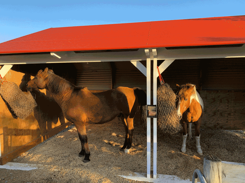 Pictured above is Loreen's Horse Shelter with her happy horses munching on some hay. Click here to see more info on this Horse Shelter
